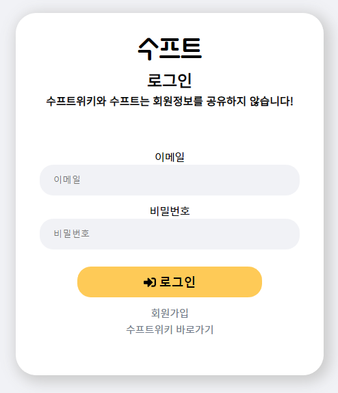 소프트웨어와 관련된 학교이고 반이기 때문에 "소프트" 유사 단어인(???) "수프트"로 프로젝트 이름을 결정하였습니다. 늘 만들던 데로 Front-End는 TypeScript, React로 Back-End는 TypeScript, NodeJS로 결정했습니다.