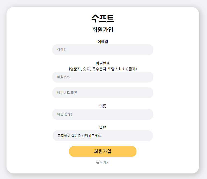 - 교내 학생이 아니어도 누구나 가입 가능하고 별도의 이메일 인증 같은 게 없어서 무분별한 가입이 가능합니다. -> 이메일 인증과 교내 학생인걸 인증할 수 있는 방법 도입