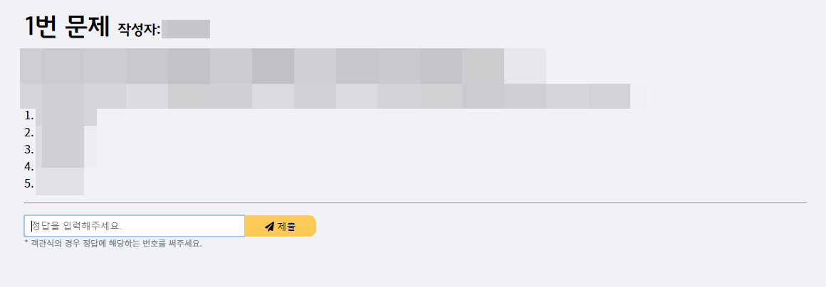 - 객관식이면 번호만 고르면 되는데 정답란에 문제를 입력해야 합니다. -> 버튼 만들거나 등등으로 해결
