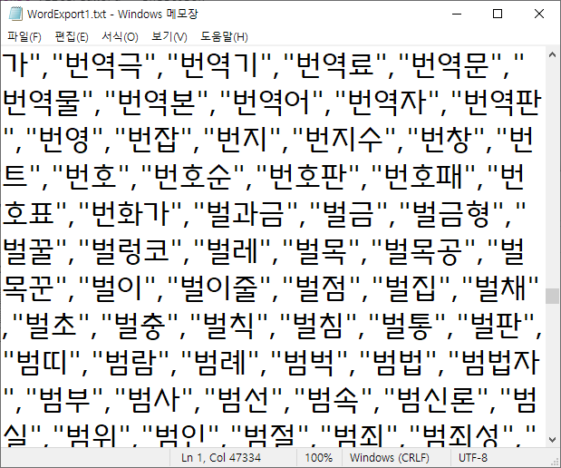 사전 용량이 만만치 않습니다. 첫 번째 사전 파일이 114MB인데 위에서 만든 스크립트를 실행하면 Heap out of memory가 뜹니다. 해당 오류가 뜨지 않더라도 처리 속도가 느렸기 때문에 해결할 필요가 있습니다. 주원인은 File I/O라고 생각하는데,