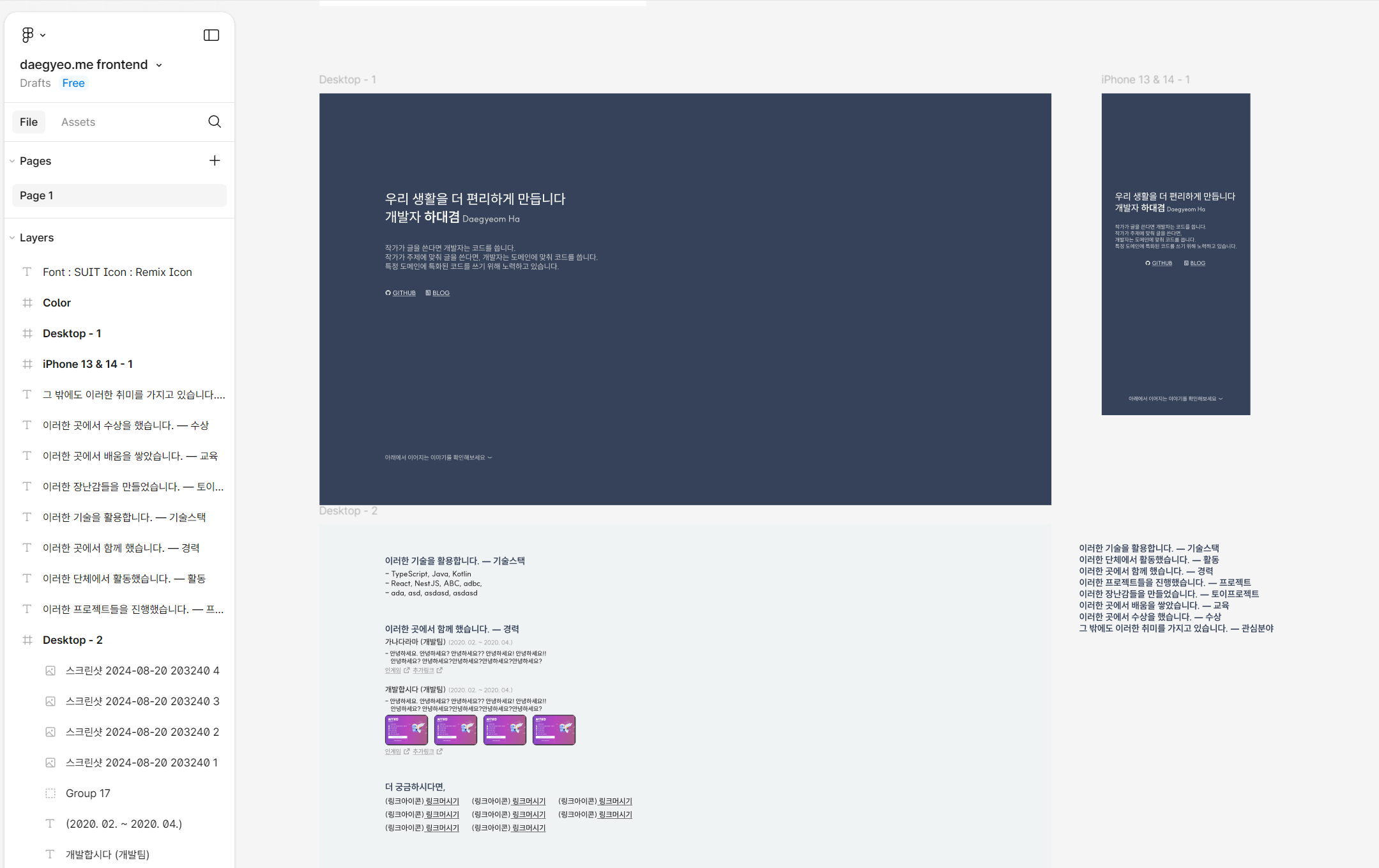 항상 CSS로 개발부터 시작했는데 이번에는 Figma로 (디자이너만큼은 아니지만) 기초적인 틀을 잡아줬습니다.