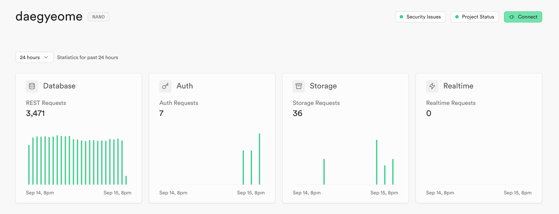 이미 Firebase 제품을 쓰고 있기 때문에 그대로 쓰는 선택지도 있지만 개인적으로 구글의 문서화 스타일을 좋아하지 않습니다. 마침 Supabase가 Firebase의 대체제로 뜨고 있었고 무료 플랜 범위를 벗어날 만큼 대형 프로젝트가 아니기 때문에 Supabase를 쓰기로 했습니다.