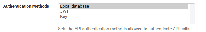 또는 JWT, Key 방식으로도 인증이 가능합니다. 해당 내용은 여기서 다루지 않으며 pfSense의 REST API 메뉴에 들어가면 인증 방식을 선택할 수 있습니다.