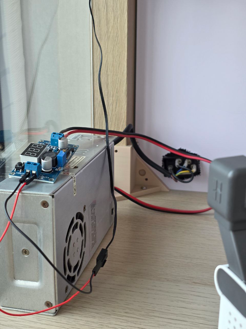 일반적으로 컴퓨터 쿨러는 12V를 사용합니다. 쿨러를 위한 추가적인 전원을 끌어오기 위해 안 쓰던 3D프린터에서 가져온 SMPS를 사용했습니다. SMPS에서 DC 12V 전원을 바로 가져올 수 있습니다. 처음에는 스탭다운 컨버터를 사용해서 9V로 낮춰서 사용했는데, 스탭다운 컨버터가 불량으로 오는 바람에 12V에 직결로 연결해 줬습니다.. 🥲